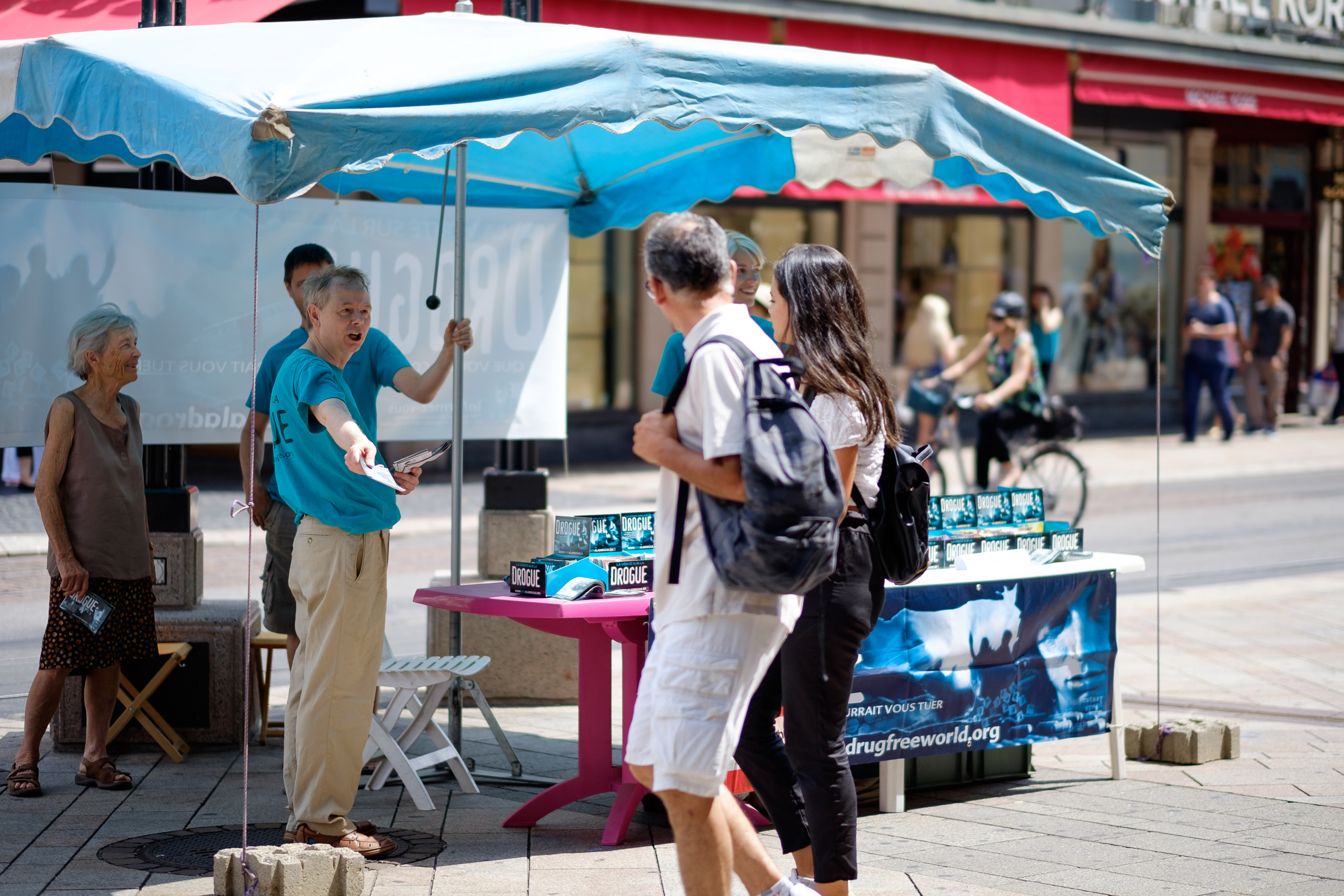 To celebrate the 26 June United Nations International Day on Drug Abuse and Illicit Trafficking, the 11 volunteers of the Geneva Say No To Drug team held booths and visited no less than 300 shops of the city. Following the dramatic 2017 World Drug Reports of the UNODC* and of the EMCDDA*, their purpose was to do a big educative campaign on the harmful effects of the 10 drugs the most used. They distributed during the week-end in Geneva 8,000 booklets The Truth About Drugs to raise the awareness of the youngsters, the parents, the educators, the officials interested by the drug problem, on the dangers the drugs represent not only for the individual health but for the whole society.