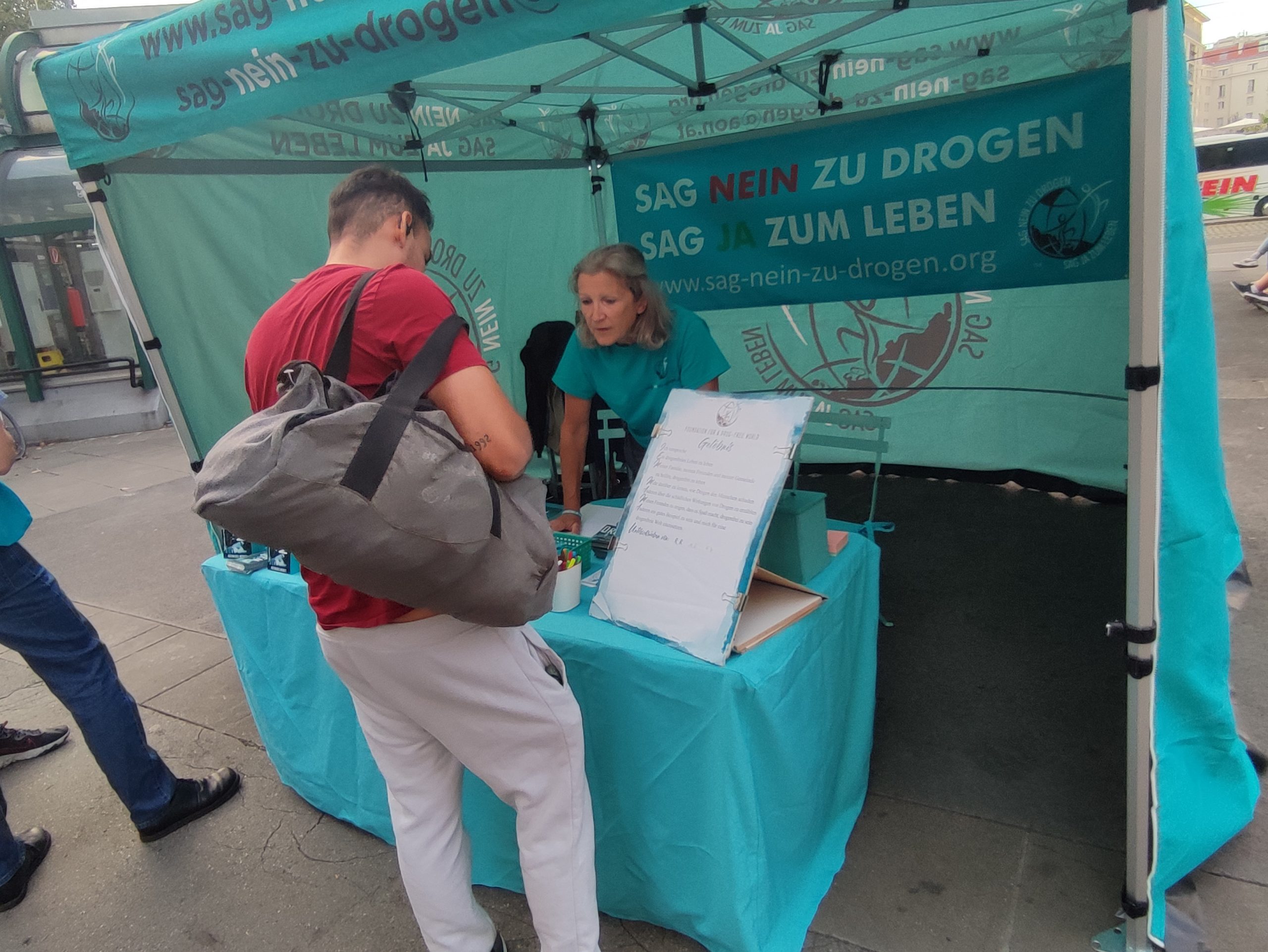In the frame of the celebration of the Overdose Awareness Day, the Team of volunteers of the association “Sag Nein Zu Drogen, Sag Ya Zum Leben” (Say No To Drugs, Say Yes To Life) from Vienna, held their booth from 18:00 to 21:00 the September 1st on the Schwedenplatz, a famous sqare in the center of Vienna. This place formerly Ferdinandplatz had been renamed after the World War II to thank Sweden for the aiding.