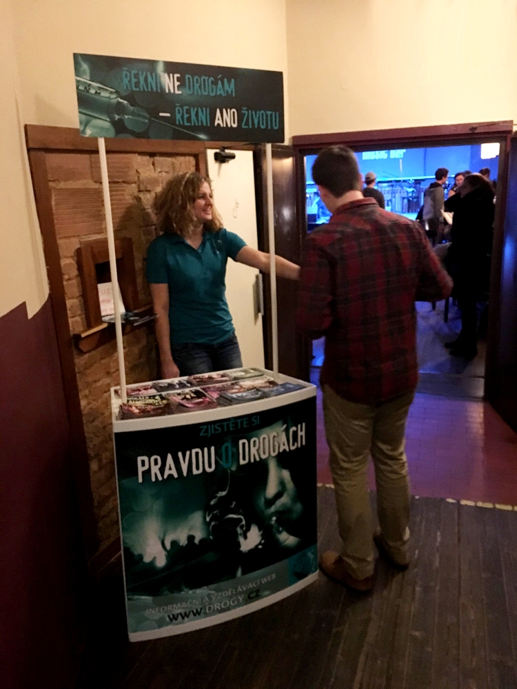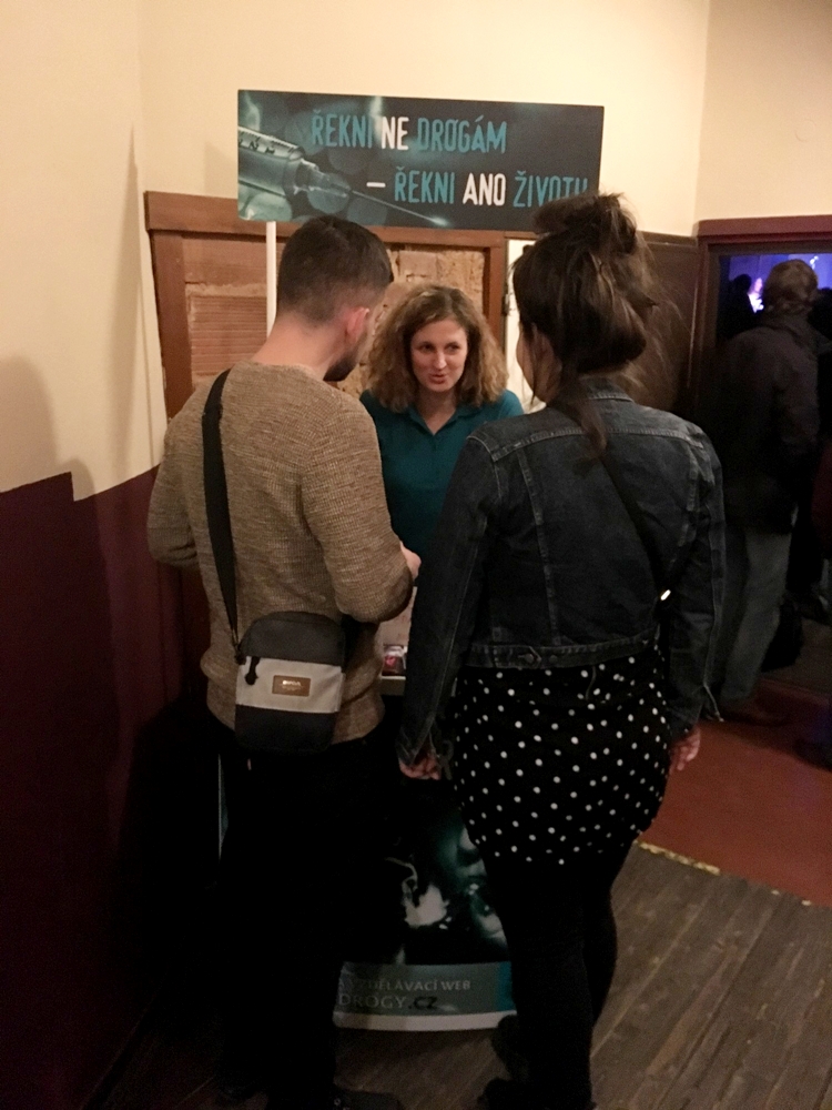 Indeed, they held for the first time a drug information booth in Pilsen City ,during a night music event giving the floor to new bands and artists. This was gathering young people but not only and all the music lovers . The booth was set up right in the entrance of the club. This was a good opportunity for the volunteers to discuss freely about the drugs with the attendees. Many had good and pertinent questions which were utterly answered about: how harmful drugs and alcohol could be and why. A fruitful and friendly evening that the club manager appreciated too.