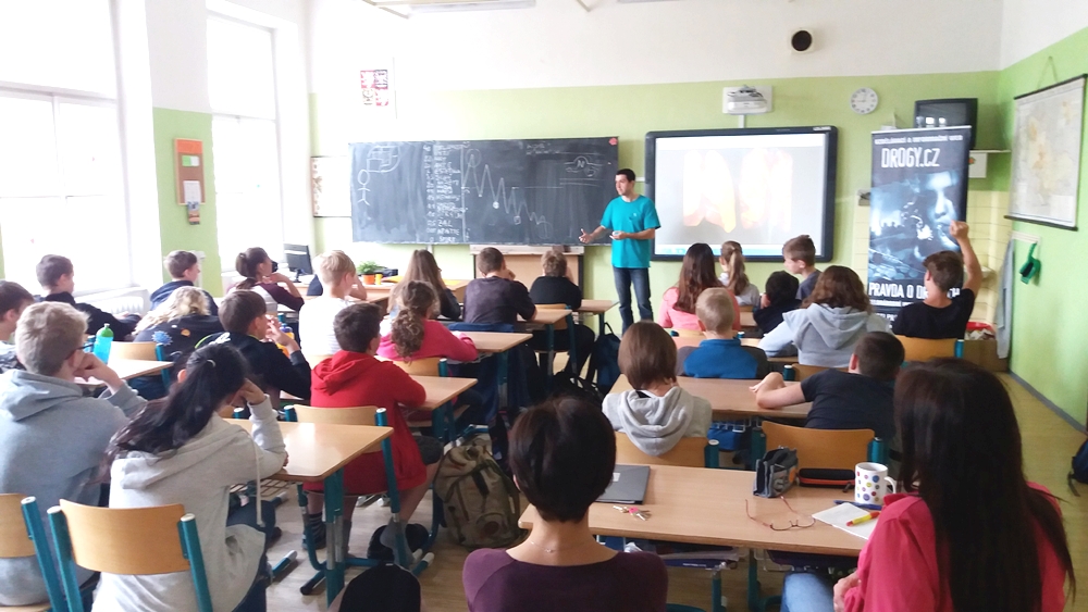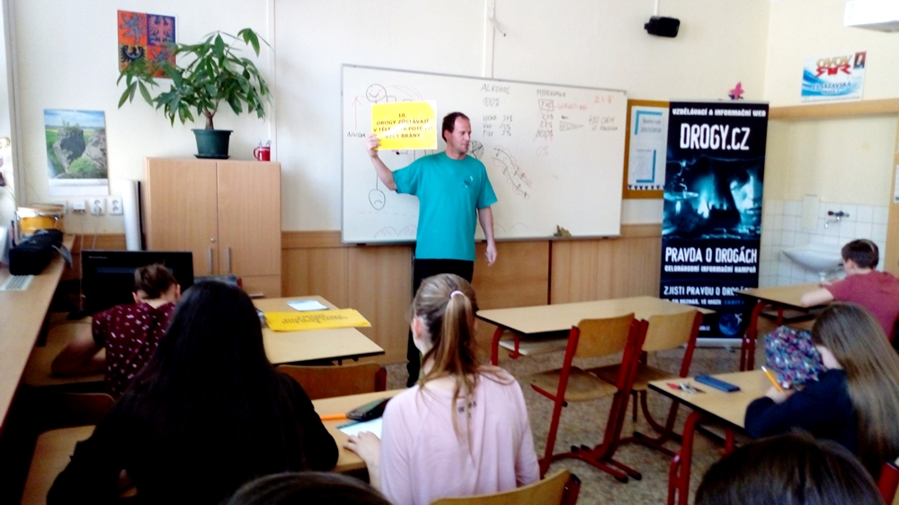On 26 and 27 April, the Czech drug prevention team did 4 lectures in different schools, one being specialized for children having behavior problems. In this latter, the teacher was impressed by how the young students were attentive, curious and cooperative with the lecturer.
