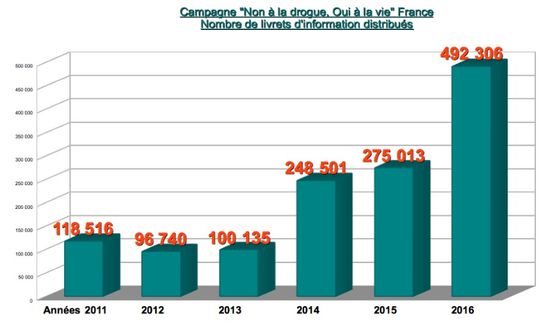 Over the 2016 year the SNTD associations covering France distributed about half a million booklets The Truth About Drugs!