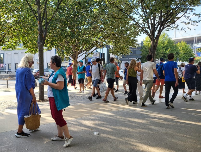The French SNTD volunteers were distributing their drug information booklets from the series The Truth About Drugs near the stadium entrances. The first week of the competition some 9,000 booklets were handed out to the supporters, fans and visitors. Many of them appreciated this action, including Security agents.