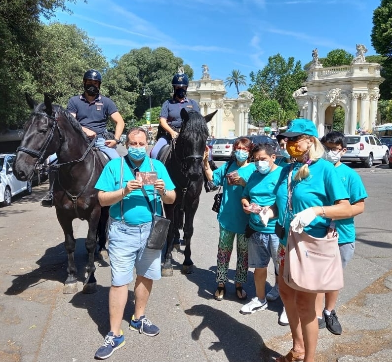 During this time, in Roma, the Dico No Alla Droga Team decided to take a rickshaw ride to the famous Villa Borghese. And there they handed out drug prevention flyers to parents and youth and more, they got the cooperation of food peddlers who took materials to distribute to customers.