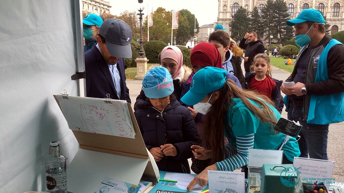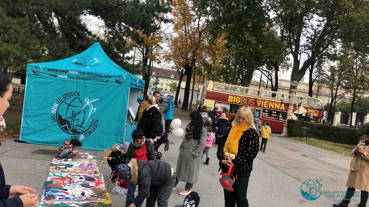 This was for the National Holiday in Austria that the Say No To Drugs Vienna Team went to set up their famous Turquoise booth in front of the Museum of Natural History located on the nice Maria Theresien Platz with the huge and World Cultural Heritage classified monument of Empress Maria Theresa (1717-1780).