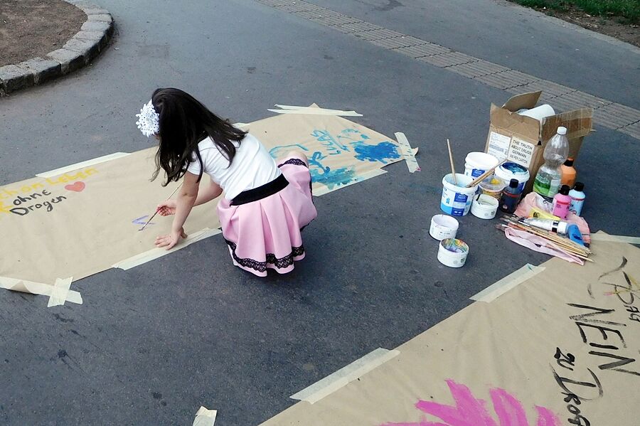 Focusing on prevention the team of volunteers was distributing to the youth, parents and public their booklet The Truth About Drugs, providing the basic vital information they have to know to make the right decision about the harmful effects of drugs. The volunteers were also offering to anyone the possibility to express their thoughts by painting!